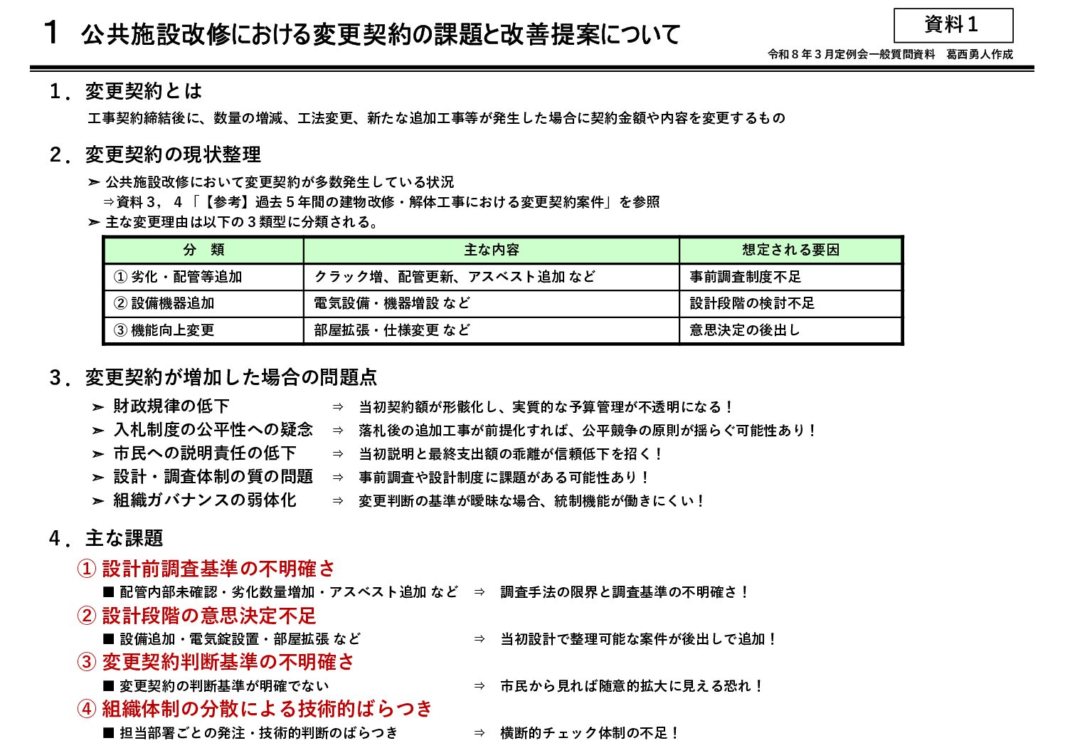 資料 令和8年第1回平川市議会定例会における私の一般質問について 令和8年第1回平川市議会定例会における私の一般質問について 令和8年3月9日(月)の第6席(その日の2人目)で登壇予定です。 宜しくお願い申し上げます。 ■資料 令和8年第1回平川市議会定例会一般質問配布資料(葛西勇... 2026.03.03 資料